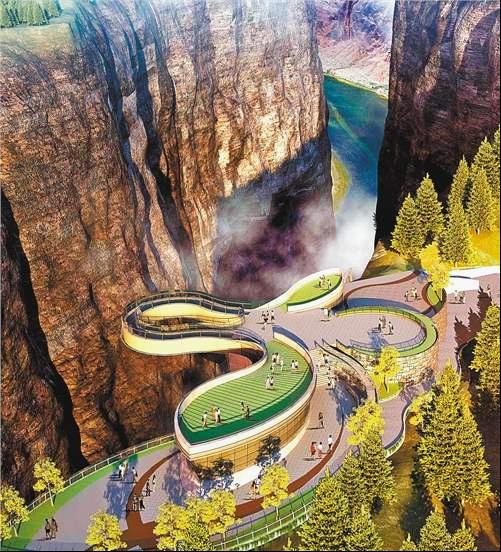 雲陽(yáng)龍缸景區(qū)雲端廊橋懸挑效果圖