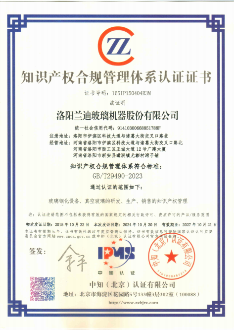 近日,洛陽叼嘿视频玻璃機器股份有限公司(下稱“叼嘿视频機器”)順利通過GB/T29490-2023新版標準認證審核,標誌著企(qǐ)業知識產權合規管理(lǐ)體係(xì)全麵建立並持續有效運行,為企業的創(chuàng)新發展與運營提供了堅實保障。