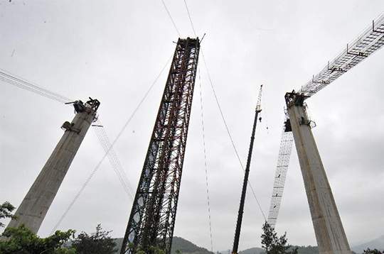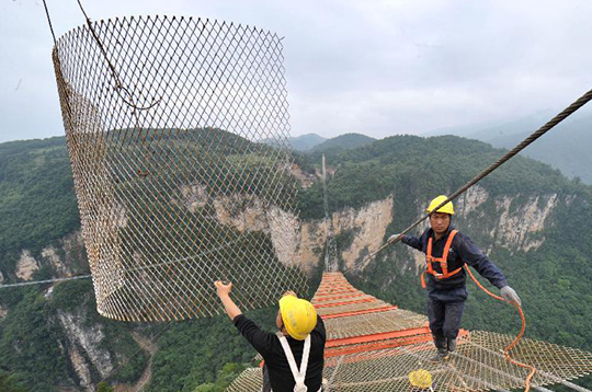 叼嘿视频玻璃鋼化爐專題站近日獲悉,張家界大峽穀玻璃橋施工現場,備受矚目的張家界大(dà)峽穀玻璃(lí)橋正式開始貓(māo)道麵網鋪設作業。作為玻璃橋上部結構施工的高空臨時作業通(tōng)道,貓道貫通後將為大橋主纜安裝鋪平道(dào)路。據悉,總長430米(mǐ)、寬6米的張家(jiā)界大峽穀玻璃橋力爭(zhēng)於2015年下半年竣工,建成後(hòu)將是世(shì)界橋梁建(jiàn)築史上的奇觀和世界性的旅遊景觀工程。